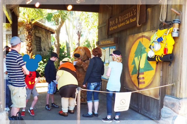 Russell,Dug/ラッセル、ダグ…ある日の時間割:9:00 AM to 12:30 PM,:1:40 PM to 4:30 PM Near It's Tough ti be a Bug!バグズ・ライフの3Dショーのエントランスの近く。Wilderness Explorer Friends