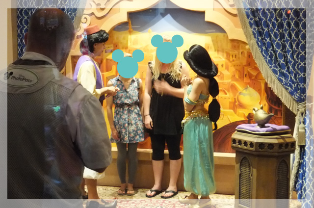 ジャスミン、アラジン モッロコエリアに入ると真ん中らへんにグリーティング用のスペースがあります。 ブースがどこがわからなくてぐるっと一周しました。グリーティングする人だけしか中に入れません!写真はエリア外から・・・