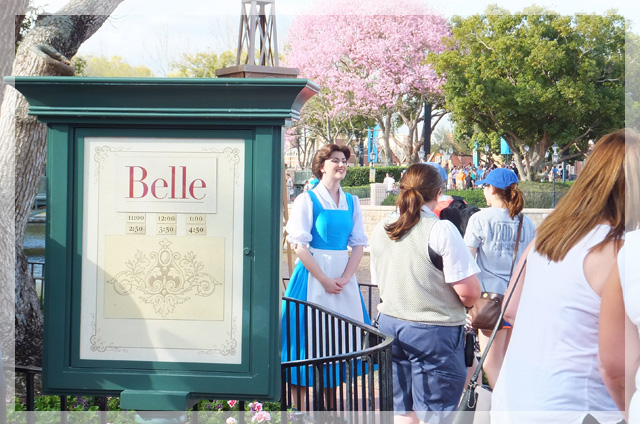 Belle/ベル モロッコ館とフランス館の間の湖側にいました。 ちなみにドレス姿のベルはノルウェーにあるアケシュース・ロイヤル・バンケット・ホール(レストラン) キャラクターダイニングで会えるようです。