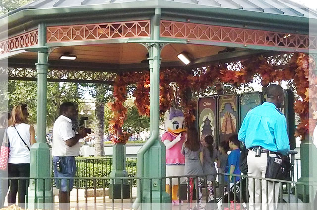 Daisy Duck/デイジー・ダック…ある日の時間割:11:30AM to 2:30PM,3:40 PM to 6:30 PM もともとダッフィーとのグリーティングだった場所。ここ最近はずっとデイジーのようです。