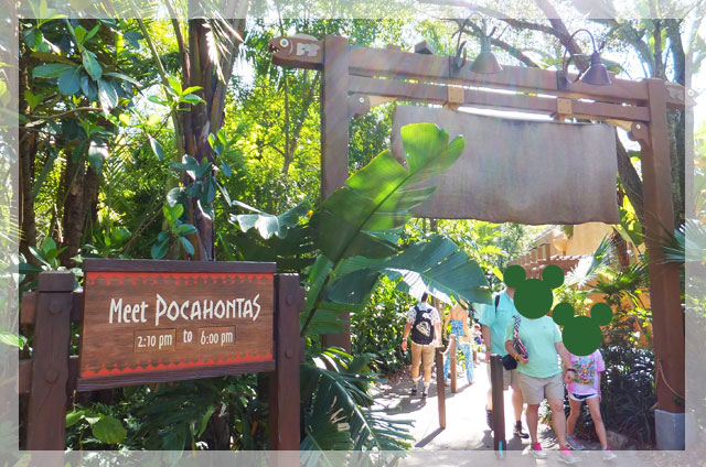 Pocahontas/ポカホンタス…ある日の時間割:9:00 AM to 1:10 PM :2:10 PM to 6:00 PM ディスカバリーアイランドからダイノランドUSAへの橋の手前にあります。