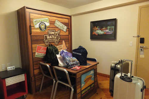 Disney's Art of Animation Resort ←公式サイト アートオブアニメーションは The Little Mermaid Standard Room(リトルマーメイド)--大人4人まで The Lion King Family Suites(ライオンキング)--大人6人まで Cars Family Suites(カーズ)--大人6人まで Finding Nemo Family Suites(ファインディングニモ)--大人6人まで 4タイプあります。 私たちが泊まったのはカーズの部屋でした。 大人6人と言ってもベッドは正味3つです! 1つだけちゃんとしたベッドであとはソファベッドとなんちゃってベッドです!