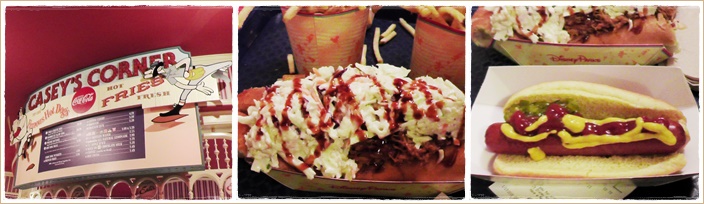 中央の写真はバーべキュー味のポークとコールスローがのったボリューム満点のドッグ。